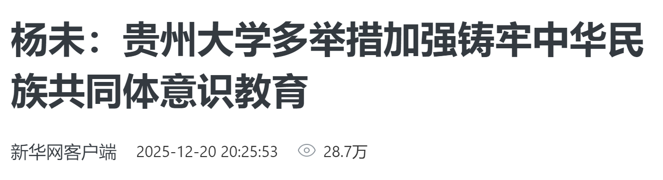 新华网 :贵州大学党委书记杨未:贵州大学多举措加强铸牢中华民族共同体意识教育