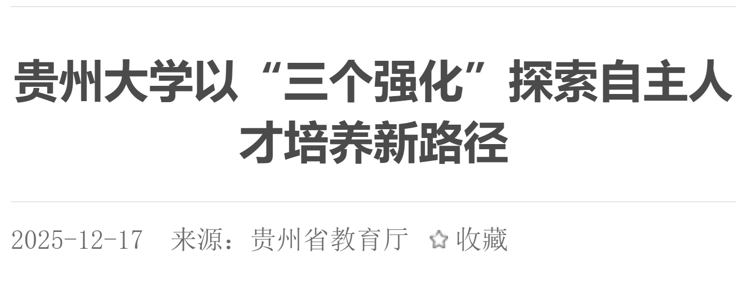 贵州省教育厅官网:贵州大学以“三个强化”探索自主人才培养新路径