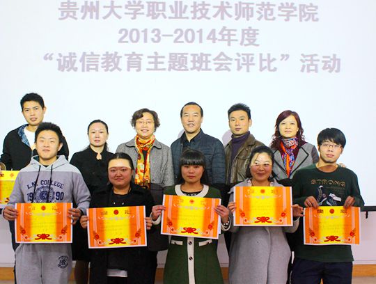 新闻网讯(记者团 游远 实习记者 李静 报道|摄影 李安康)为了加强大学生诚信精神文明建设,引导大学生树立“求真务实、言行一致”的诚信形象。11月23日14时30分,我校职业技术师范学院在蔡家关校区三教416教室,举行了“2013—2014年度诚信教育”主题班会评比活动。