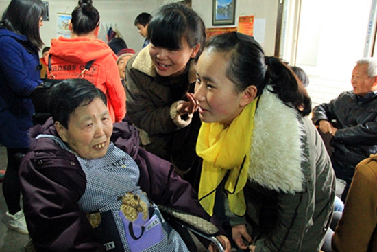 从工作人员那里了解到,住在三楼的蒋爷爷,他从去年身体开始变差,现在已经全身瘫痪。老伴在三年前就去世了,三个子女平时工作都很忙,没什么时间照顾他,所以他选择来到敬老院,希望减轻一些子女的负担。蒋爷爷说:“其实在这里我不开心,没人说话,又动不了,每天都是坐在这里,可是没有办法,不能拖累孩子们啊!今天你们这些孩子来看我们,我觉得很欣慰,这样就有可以说话的人了。”新闻131班的同学们除了和老人聊天以外,还分成小组表演了节目,老人们都笑得很开心。
