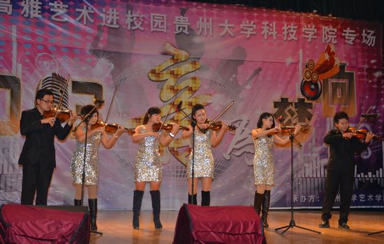 新闻网讯(记者团 白清慧 吴道萍 实习记者 宋露芳 何亚男 报道|摄影 石新德 李光艳)12月6日晚,由省教育厅主办, 贵州大学艺术学院承办的“贵州省高雅艺术进校园”再次进驻科技学院大礼堂,科技学院院长范泽均、院党委副书记罗聃宁及几百名师生共同享受了这场视听盛宴。
