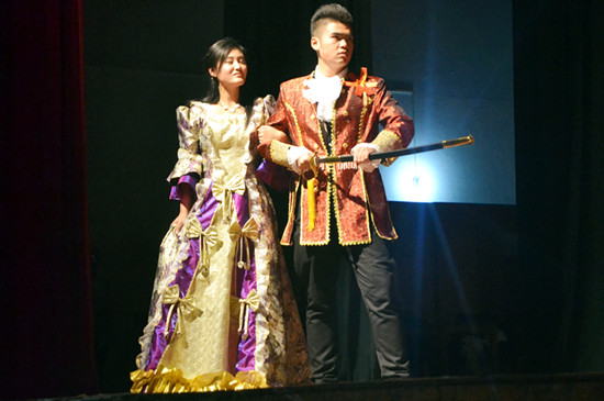 新闻网讯 (记者团 马四伟 实习记者 罗玉兰 洪雨 报道│摄影 韦杏桃) 为增强我校学生对英国古典文化的了解,促进中外学生的文化交流。12月5日晚,我校外国语学院(以下简称为“外院”)及美好人生话剧社在南区大礼堂上演莎士比亚的著名悲剧《罗密欧与朱丽叶》,引来许多贵大学子的观看。
