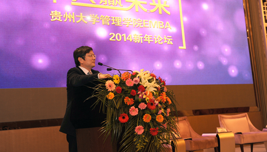 新闻网讯(记者 庞爱忠)12月27日下午,管理学院EMBA2014新年论坛在观山湖区国际生态会议中心举行。国务院参事室特约研究员、国家统计局原总经济师姚景源,省政协副主席、管理学院名誉院长孙国强教授,贵州大学校长郑强,清华大学经济管理学院创新创业与战略系陈劲教授出席。管理学院党政负责人、教职工以及EMBA一至九期学员、MBA学员代表、EDP学员代表等参加。活动特邀中央电视台著名节目主持人董倩主持。