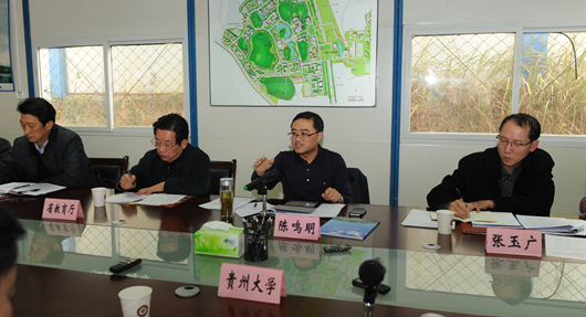 贵大新闻网讯(记者 庞爱忠)1月2日下午,2014年元旦过后第一个工作日,陈鸣明副省长率省政府副秘书长张玉广、省发改委、省教育厅、省住建厅负责同志到我校调研校园扩建二期工程并召开现场办公会,校领导姚小泉、郑强、任钢建、杨伟民、王红蕾、刘勇以及贵阳市副市长吴军、花溪区政府负责同志参加。