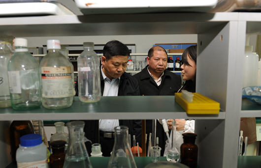 当日下午3点,姚小泉一行来到农学院的国家小麦改良中心贵州分中心调研,参观了选种区、新品种展示区、特色小麦选育区。姚小泉边走边看,边听边问,不时停下脚步与农学院领导及专家们交谈,了解紫色小麦等特色品种的选育研究现状及市场前景。随后,姚小泉一行来到花溪南校区,先后参观了贵州省中药材繁育与种植工程实验室、贵州省果树工程技术研究中心、贵州大学生物安全国际合作研究中心、茶文化实验室、贵州省烟草品质研究重点实验室等。每到一处,他都认真询问各实验室在人才培养、学科建设、科学研究、服务社会等方面的工作,并勉励师生继续努力、多出成果。