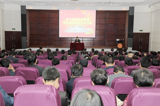 贵大新闻网讯(记者 庞爱忠)4月3日下午,省委党的群众路线教育实践活动第十督导组副组长、省文联党组成员、专职纪检员张绪晃在北校区学术报告厅为我校处级以上领导干部作题为《坚持党的群众路线,切实做到为民务实清廉》的报告。