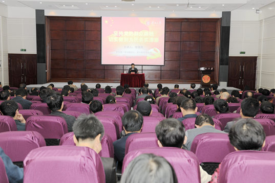 4月3日下午,省委党的群众路线教育实践活动第十督导组副组长、省文联党组成员、专职纪检员张绪晃在北校区学术报告厅为我校处级以上领导干部作题为《坚持党的群众路线,切实做到为民务实清廉》的报告。