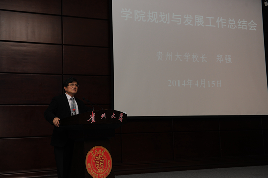 鉴于本次汇报会取得的积极成果,郑校长表示,要使学院规划与发展工作汇报会形成惯例,把它打造成为贵州大学的特色品牌,充分展现贵州大学的风貌。最后,郑强校长要求大家要进一步明目扩胸,进一步明确办学方向,进一步突出办学特色,进一步提升办学水平,努力打造学院特色和品牌,扎实推进有特色领军型高水平大学建设。