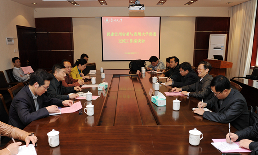 武鸿麟介绍道,此次调研和交流的目的主要是推进多党合作,推进高校统一战线工作,从民建组织的角度为助推贵州大学的发展寻求切入点和着力点。他指出,民建贵州省委一直关注贵州大学的发展,支持和帮助贵州大学民建组织加强自身建设,积极开展工作。他希望民建省委和贵州大学在学校高水平大学构建、民建基层组织工作开展、优秀干部推荐等方面进一步加强沟通和联系。