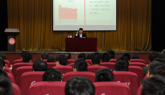 贵大新闻网讯(杨波)在党的群众路线教育实践活动深入开展之际,校党委书记、党校校长、党的群众路线教育实践活动领导小组组长姚小泉于4月24日晚在花溪北校区大礼堂上了一堂生动的党课——中国共产党的性质。近千名青年师生聆听党课。