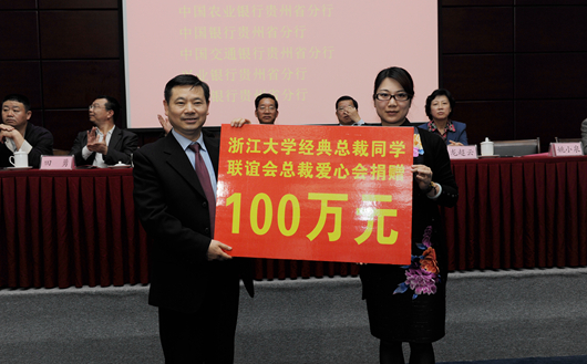 贵大新闻网讯(实习记者 慎志懿 /摄影 陈恒)5月9日下午,贵州大学教育发展基金会成立大会暨捐赠仪式在我校花溪北校区行政楼学术报告厅隆重举行。原外经贸部副部长,博鳌亚洲论坛原秘书长龙永图,省人大常委会党组书记、副主任、贵州大学原党委书记龙超云,省教育厅党组书记、厅长霍健康,泰豪集团有限公司董事局主席黄代放,贵州大学原校长陈叔平,省民政厅民间事务管理局局长许文益,珠海市梓豪物业管理有限公司董事长刘志华,贵州赤天化集团公司总经理、贵州大学EMBA校友会会长田勇,瓮福(集团)有限责任公司总经理杨三可,中国烟草总公司贵州省公司副总经理杨俊,浙江大学继续教育学院经典总裁同学联谊会秘书长茹洁颖,省工商联副主席、贵州长通集团总裁张钊,省各厅、局相关部门负责人、我校全体校领导出席仪式。师生代表和企业、银行代表300余人参加会议。会议由校党委副书记任钢建主持。