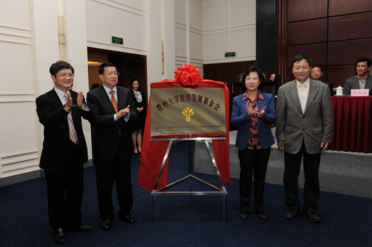 许文益宣读批准贵州大学教育发展基金会成立的文件。我校助理巡视员谢田凯宣读基金会第一届组织机构成员名单。龙永图、龙超云、陈叔平、郑强为基金会揭牌。田勇、刘志华、杨三可、杨俊开通基金会网站。黄代放宣读《关于对贵州大学教育发展基金会徽标(LOGO)征集入围作品和优胜作品进行表彰的决定》。霍健康为贵州大学教育发展基金会徽标征集优胜作品颁奖;张钊为贵州大学教育发展基金会徽标征集入选作品颁奖;姚小泉讲话。他对贵州大学教育发展基金会的成立表示祝贺,对相关单位和个人的捐赠表示衷心感谢。他表示,贵州大学将奉行“汇集爱心捐赠、培育黔中英才、助推科教发展”的基金会宗旨,认真执行基金会章程,积极筹措资金,确保基金保值增值,以更好地服务于学校发展,服务于社会公益事业。