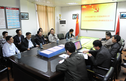 贵大新闻网讯(记者 杨波)5月16日下午,省委教育工委书记、省教育厅党组书记、厅长霍健康一行到我校调研指导党的群众路线教育实践活动。校党委书记、我校党的群众路线教育实践活动领导小组组长姚小泉,校党委副书记、我校党的群众路线教育实践活动领导小组副组长任钢建,教育厅办公室、省委教育工委组织处负责同志陪同调研。