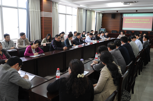 土木工程学院党委书记徐建平介绍了学院学生应急服务中心的成立背景、工作情况及效果;法学院党委书记胡小兵汇报了本学院开展的“三个一”活动、机关管理人员绩效考核工作、“法制之行”法律服务系列活动等情况。教师代表陈松、刘远明和学生代表汪中元、陈璐畅谈了对教育实践活动的体会和意见建议。