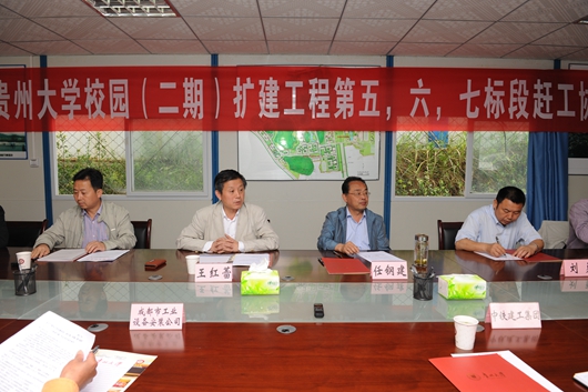 任钢建代表学校作讲话,他强调,贵州大学校园扩建工程(二期)是贵州省的重点工程,更是省委书记、省长工程,省委省政府高度重视,工程能否实现预期的工期目标,不仅关系着19000名学生在2015年春季能否顺利入住,同时也对贵州高校的校园建设起到引领示范作用。目前,第五、六、七标段已具备了加快工程进度的条件,希望施工单位能发扬“铁军”精神,在原有进度要求的基础上,确保工程质量,加快施工进度,争取按照原有工期计划提前完工,顺利交付使用。