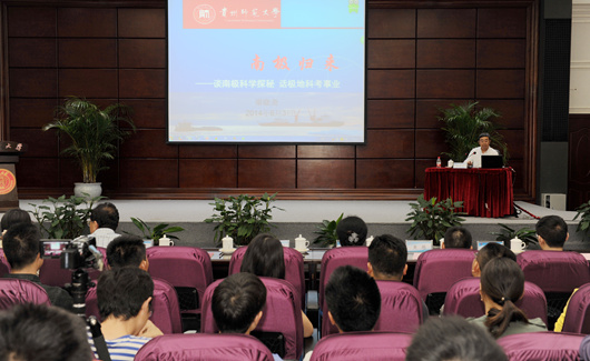 省政协副主席谢晓尧教授为我校师生作题为“南极归来”的报告。报告会上,谢晓尧通过自己在南极亲自拍摄的丰富图片和视频资料,从“南极的地理位置和特点”“长城站中国第三十次南极科考”“此次南极之行——我的工作”“我国的极地考察事业和战略意义”四个方面对其在南极科考期间的研究工作成果和认识,南极的战略重要性以及国家核心利益的维护,我国国际地位的提升在南极科考中的体现等内容进行了深入浅出的精彩阐释,并对我校学子提出的问题进行了解答。