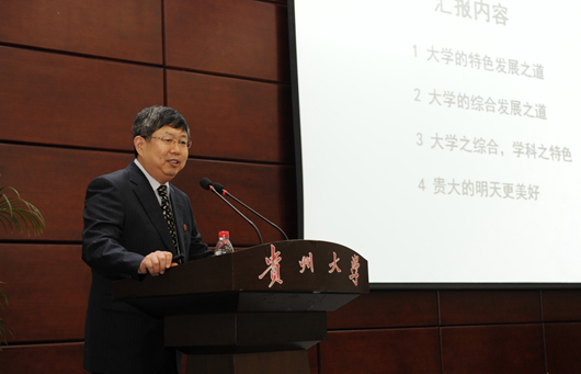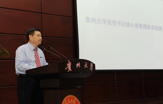 校党委书记姚小泉致辞。他说,新贵州大学组建10年来,科学把握融合与发展、特色与创新、服务与共建的辨证关系,提升办学理念,创新办学思路,优化办学资源,极大地改善了学校改革发展的内部和外部环境,实现了学校整体实力的若干重大突破。下一步,贵州大学将把“提升综合实力建设”这项工作列为学校发展的头等大事,本着“共谋发展、共同进步”的原则,与省内外兄弟院校相互学习、相互借鉴,扎实推进有特色领军型高水平大学建设。