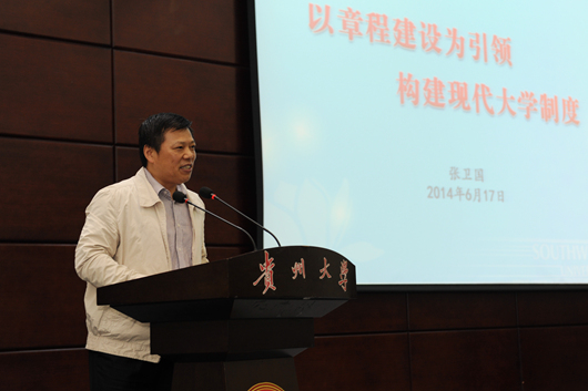 张卫国、高文兵、刘炯天作特邀报告。张卫国作了题为《以章程建设为引领 构建现代大学制度》的报告。他以西南大学为例,介绍了章程建设的实践与经验,阐述了内部治理结构的实践与探索,科学提出高校要深化改革创新,坚定不移走内涵式发展的道路。