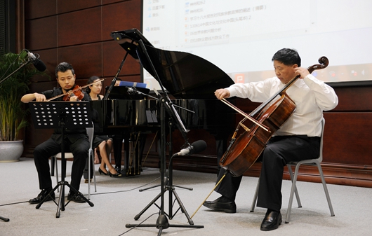 作为一名古典音乐的痴迷者,叶小文现场独奏了《天鹅》、《如歌的行板》和《牧歌》,与贵阳交响乐团小提琴演奏家杨帆,我校艺术学院钢琴演奏家谭璟一同合奏《悲歌》等曲目,用音乐进一步阐释他对艺术的理解、与音乐的情缘,为在场师生奉献了一场音乐盛宴。
