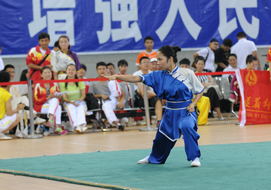 贵大新闻网讯(文/王名润 摄影/陈恒)为提高大学生身体素质,弘扬传统武术文化,7月25日上午,我省第三届大学生运动会武术比赛在贵州大学体育馆开幕。