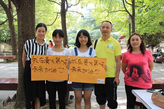 “为了开心呢!”、 “为了学弟学妹!”经济学院2012级的梁雪说:“因为想把美好的事物与新生分享,从他们身上圆自己的遗憾。”蕾Anfive曾经私聊了50多名好友回忆进校第一天的场景,她发现其中30多个朋友都有同样的遗憾:进校第一天,没和爸妈合张影。 所以,她决定通过竹马实验室,召集这群有着同样遗憾的小伙伴,一起行动,让贵大校园变得更温情一点。正如他们给新生留下的获取全家福的名片上所写:“我们能做的是,减少点遗憾,送去原本该有的美好。”令她没想到,也最感动的是,会有那么多小伙伴积极响应。 只是,这次活动并没有如他们很多人预想的那样:有很多家长愿意主动给孩子写明信片,定制的320张贵大明信片恐怕不够用;会有很多家长和孩子来主动邀请摄影师为他们拍照。