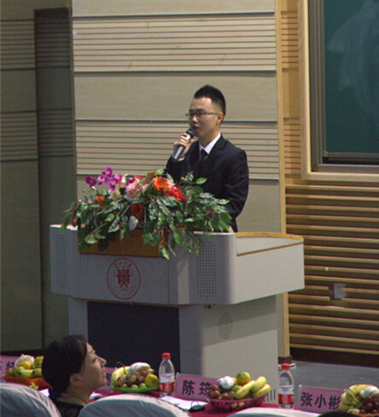 在统票时,陈筠副院长发表讲话:“研究生会是师生之间的桥梁和纽带,就像一个中国结。”同时,陈院长还表达了对第十届研究生会的感谢,希望新一届研究生会成员们要拥有大自然般的博大胸怀和服务之心。之后,大家一起观看了第十届研究生会风采展示视频,研究生会成员丁亚龙为师生献唱《青花瓷》和《他不懂》。