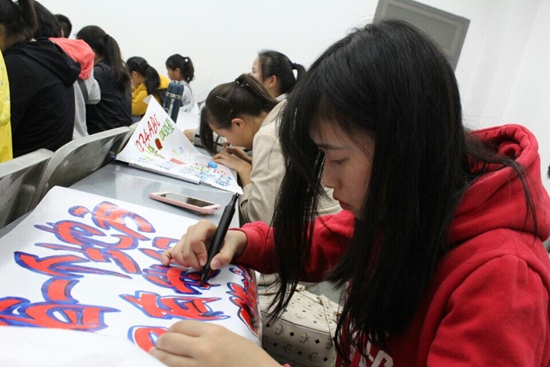 培训之前,宣传部部长给大家准备了练习稿纸和麦克笔。首先,青协常务组组长段冰冰向新成员介绍了POP基本常识,然后开始从基本笔画开始让大家寻找自己的POP灵感。在培训过程中,宣传部的几个老成员逐一帮新成员指出问题并提出改进意见。参加培训的大一新生吴慧说:“之前根本没接触过POP,通过今天的学习,我想自己画一幅海报应该没有问题了。”