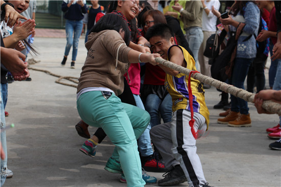 刚从比赛场地走下来的英语123班的同学刘清泽十分兴奋的说:“我们赢啦!10秒钟完胜两局!这是同学们团结一致的结果,外院的男生比较少,但幸运的是我们班的男生都身强体壮。”谈到这场拔河比赛对他的意义时,他表示:“大三了,大家的学习任务都比较重,几乎都是各自忙自己的,但拔河比赛让我们拧成一股绳子,我特别喜欢这种集体活动,对于我们来说,参加这种活动的机会将越来越少了。”