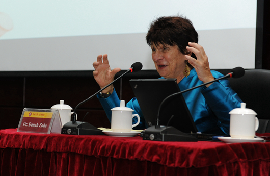 贵大新闻网讯(记者 尹寒涛)“世上一切问题,源自思维的问题。”10月17日晚,管理学院邀请英国管理思想大师及企业心灵改造大师丹娜•左哈尔博士、台湾中央大学宋铠教授作学术讲座,分别作《量子管理学在企业的运用与发展》、《企业创新管理》报告。