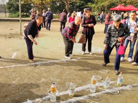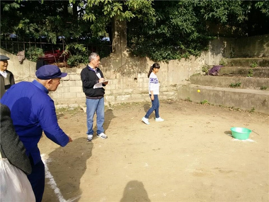 比赛现场还有一群年轻人的身影,他们是来自农学院青年志愿者协会和“学生之家”的志愿者们,负责布置场地,搬比赛器具,拾球、套圈,摆道具。农学院青协负责人徐雷表示:“到场的都是没课的同学自愿报名参加,大家的积极性都很高,尽量满足老人们的要求。参赛队老人给我们带来一种越老越可爱的感觉,能为他们服务我们也很快乐。”