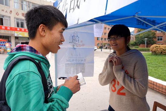 据粤语社副社长杨灵通介绍,该活动首次在我校开展,旨在为成天呆在宿舍的宅男宅女们提供一个交友的机会,加强交流。前来报名的信安131班的李婷钰同学说:“我主要想尝试一下,能成功配对的几率不大,要就是多交点朋友吧。”