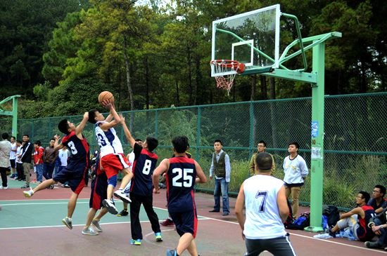 贵大新闻网讯(记者团汪佳航陈瑶李羚源实习记者张圆喻碧华姚玉莹报道|摄影王福宇)为增进院系间的情感,提高同学们的身体素质。经过一个多月的比拼,11月5日中午,研究生“友谊杯”篮球赛半决赛在我校西校区篮球场拉开序幕。