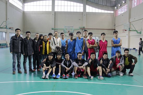 大数据学院学生会主席纪磊、团委副书记李佳俊及双方队员在赛后合影留念,第一届“大数据杯”篮球赛结束。