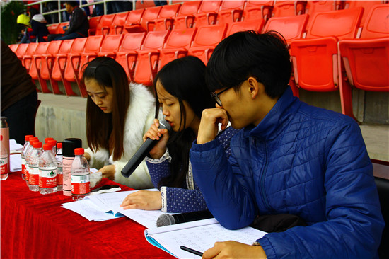 通讯组由校广播站4名广播员组成,他们负责入场介绍,赛程介绍和播报通讯稿等工作。