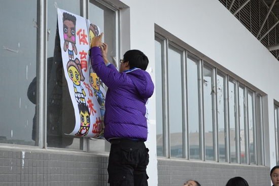 据了解,他们要为运动员们分发号码牌、负责同学们的签到、张贴宣传海报及提供后勤资源保障。走进赛场,可以看到各院学生会成员均守候在各自参赛队伍身旁,为他们调节紧张的心理情绪,并提供水、衣服、食物等所需物品。比赛难免有受伤,跳高运动员张益菡在准备试跳时,不慎擦破双膝,科技学院服务队的同学们立即为队员提供了救护服务。“天气寒冷,而队员们穿得那么单薄,我们只想尽自己所能,为他们提供更周到的服务。”外院服务队的张清清说。