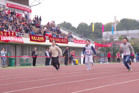 最后一组着装统一的三个运动员引起了现场观众的关注,赛后,作为运动员之一的动物科学学院的赵佳福老师说到:“我们是一个学院的,都是第一年参加,结果并不重要,就是想借这个机会锻炼一下,平时都没有时间,现在跑完感觉很爽。”