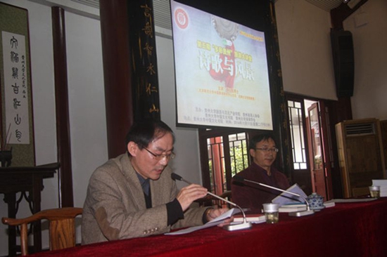 贵大新闻网讯(旅游与文化产业学院 黄珍 报道|摄影 李小毛)为活跃人文社会科学学术气氛,推动旅游与文化产业学院学科发展,加强学术交流,11月11日下午,由我校旅游与文化产业学院、贵州省诗人协会、我校中国文化书院、我校诗词协会联合主办的“多彩贵州”旅游大讲堂第五期、中国文化书院“贵山论坛”第90期学术讲座,在文化书院勉学堂举行。