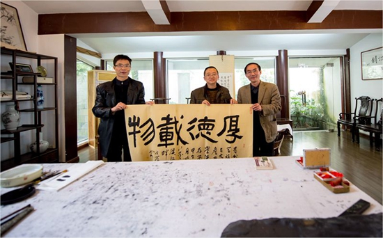 讲座结束后,石文辉挥毫写下“厚德载物”,书赠贵州大学旅游与文化产业学院。