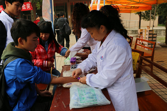 捐献造血干细胞血样采集活动在我校每学期举行一次,鉴于新区新生较少,活动地点在南北两区轮流进行。截止晚上五点活动结束,已有334名同学参加血样采集。
