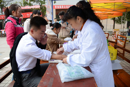 活动流程包括报名咨询、填表、审核贴码、血样采集、领取证书以及素拓条和爱心牛奶。采集血样的为贵州省红十字会的医生,采集的血样将由医生带回省红会。报名咨询处,工作人员询问同学们的年龄,体重,视力以及病史。“我原本也希冀能捐献血样,但由于体重低于标准,所以就无法参与活动。”新闻141班的郑月无奈道。我校红十字会团支书代蓓介绍,为了保证同学们的健康不会受到影响,因而他们规定体重低于50kg,近视高于600度,及年龄未满18岁的学生不得捐赠造干细胞。“体重过低的同学往往体质虚弱,不适宜抽取血液,而高度近视的同学自身眼压过高,在抽血时可能会发生不适反应。”她解释道。”不过,这种采集工作本身不会对身体造成太大影响,希望大家不要对社会上的一些空穴来风的谣言偏听偏信。”