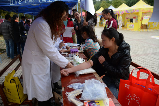“有的同学可能没有吃饭或者会晕血,我们为参加血样采集的同学准备了糖,给他们补充些能量。同学们的热情很高,南、北、新三校区均有同学前来参加。上次我们一天就采完血样,但鉴于本次参加的同学较多,活动时间延续一天。”代蓓说。