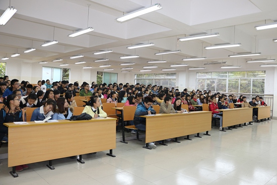 贵大新闻网讯(记者团 何瀚章 实习记者 付鼎 谭戊梁 樊宏俊 报道|摄影 杨明)11月21日下午,人文学院2014级“秋冬季学生安全教育”动员大会在我校南区致知楼202教室召开。人文学院研究生辅导员马光强主持大会,人文学院14级约200余名学生参加大会。