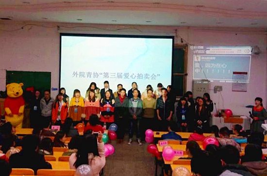 此次拍卖会邀请外国语学院党委副书记尹晓莉,外国语学院团委书记李极及外国语学院学生科聂川作为嘉宾出席。由外国语学院党委副书记尹晓莉为拍卖会致辞,外国语学院青年志愿者协会会长赵雯介绍受助孩子的情况。