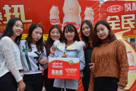 娃哈哈乳酸菌“全民暴扭”活动的负责人表示:“这次活动不仅是为娃哈哈乳酸菌饮品做宣传,也是希望同学们能多参加运动,在冬天里扭起来。”