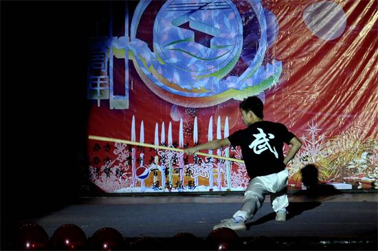 身体各部位肌肉及关节灵活变动的机械舞、优雅而又狂野的house、幅度大而简单的自由舞、wave与poping相结合的雷鬼舞,在灯光微明的舞台上,舞蹈爱好者协会的成员们扭腰、空翻,变幻出各种表演形式,瞬间点燃全场氛围。双截棍、腾空翻、踢水瓶、群斗,武术协会的成员们跟随着时紧时慢的音乐节拍,动作时而刚强,时而柔和,展现出不一样的武术风采。