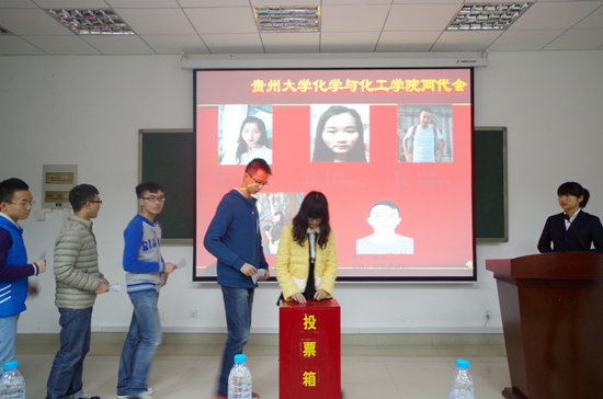 在选举过程中,化学与化工学院团委、学生会学生干部的选举从差额选举中产生。各候选人逐个上台进行简单的自我介绍并拉票,团员代表和学生代表进行投票选举。最终,马驰原、杨海峰等19人选定为新一届团委学生会成员。