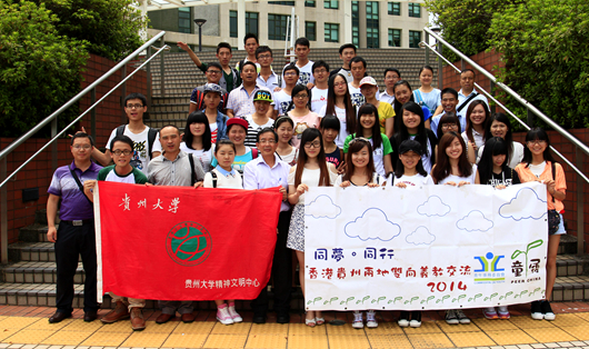 “同梦同行——香港贵州两地双向交流计划2014”是由贵州大学党委宣传部、香港青年事务委员会、贵州大学团委共同主办,贵州大学精神文明中心与香港童履联合实施的公益项目。项目第一阶段,贵州大学与香港中文大学等多所香港高校的学生联合组队,远赴贵州省赫章县结构彝族苗族自治乡多魁小学和平坝小学开展为期15天的义务支教和贫困助学系列活动,两地大学生为两所贫困山区小学向社会募捐到衣服、袜子、水杯、教学用品、运动器材等累计价值近40万元。活动获得当地政府、村民及媒体好评。项目的第二阶段,受香港青年事务委员会及香港童履邀请,贵州大学师生代表团赴港开展友好访问交流学习,访问了香港教育学院、香港中文大学、香港中华总商会、国际狮子会、香港特别行政区立法会等单位,并围绕两地文化、经济、教育、公益、法治、社会福利等开展了座谈交流。在“同梦.同行”活动中,两地青年学子一起心系中国贫困山区公益教育事业的发展,共同关注“一国两制”在香港的顺利实施和稳步推进,增进了两地青年的相互了解,建立了深厚的友谊,增强了两地青年尤其是香港青年学子对中华民族的认同感和自豪感。