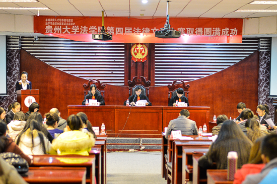 贵大新闻网讯 (记者团 陈瑶 实习记者 喻碧华 黄再萍 报道 | 摄影 蒋佶宏 ) 12月16日下午,贵州大学法学院第四届法律文书大赛决赛在北校区模拟法庭举行。此次比赛由法学院法律硕士教育中心主办,法学院法律硕士联合会承办,法学院团委学生会协办。