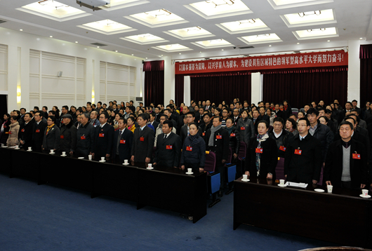 大会号召,全校各级党组织、广大党员和师生员工,继续高举中国特色社会主义伟大旗帜,更加紧密地团结在以习近平同志为核心的党中央周围,以更高的治校水平、更好的精神状态、更实的工作作风、更强的战斗能力,承前启后、继往开来,凝心聚力、开拓创新,不断增强使命自觉、发展自信、差距自省、奋斗自强,为建设具有区域特色的领军型高水平大学,为贵州科学发展、后发赶超、同步小康,为实现中华民族伟大复兴的“中国梦”作出新的更大的贡献。