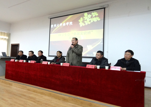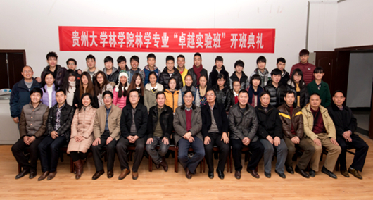 经过两个多小时激烈与充分的讨论,各位专家一致认定,该培养方案指导思想明确、内容完整、层次分明、重点突出,具有科学性、前瞻性和可行性,同意通过该培养方案。教务处副处长胡宗超要求林学院按专家意见修改完善后报批实施,最终培养出“肯思考、善思维、勤动手、爱创新”的复合应用型“卓越农林人才”。 培养方案审定会结束后,所有评审专家及领导都参加了贵州大学林学院林学专业首届“卓越实验班”的开班仪式。 金道超在会上做了充满期盼的讲话,对林学院首届“卓越实验班”的30名同学寄语:你们是我国第一批卓越农林人才教育培养计划的学生,你们经过了层层选拔,能够进入这个班级是非常不易的,因此一定要珍惜这个机会,以饱满的热情、高效地学习,学好专业基础知识、掌握好专业技能,做到学用结合、学以致用,提高自身的各方面的水平,真正成为复合应用型“卓越农林人才”。